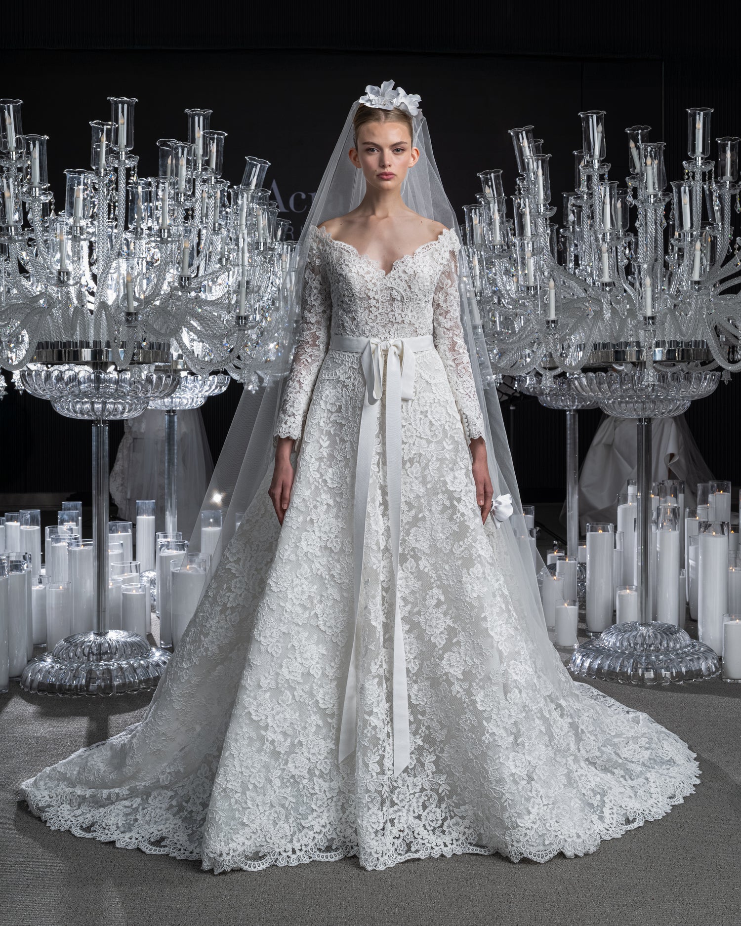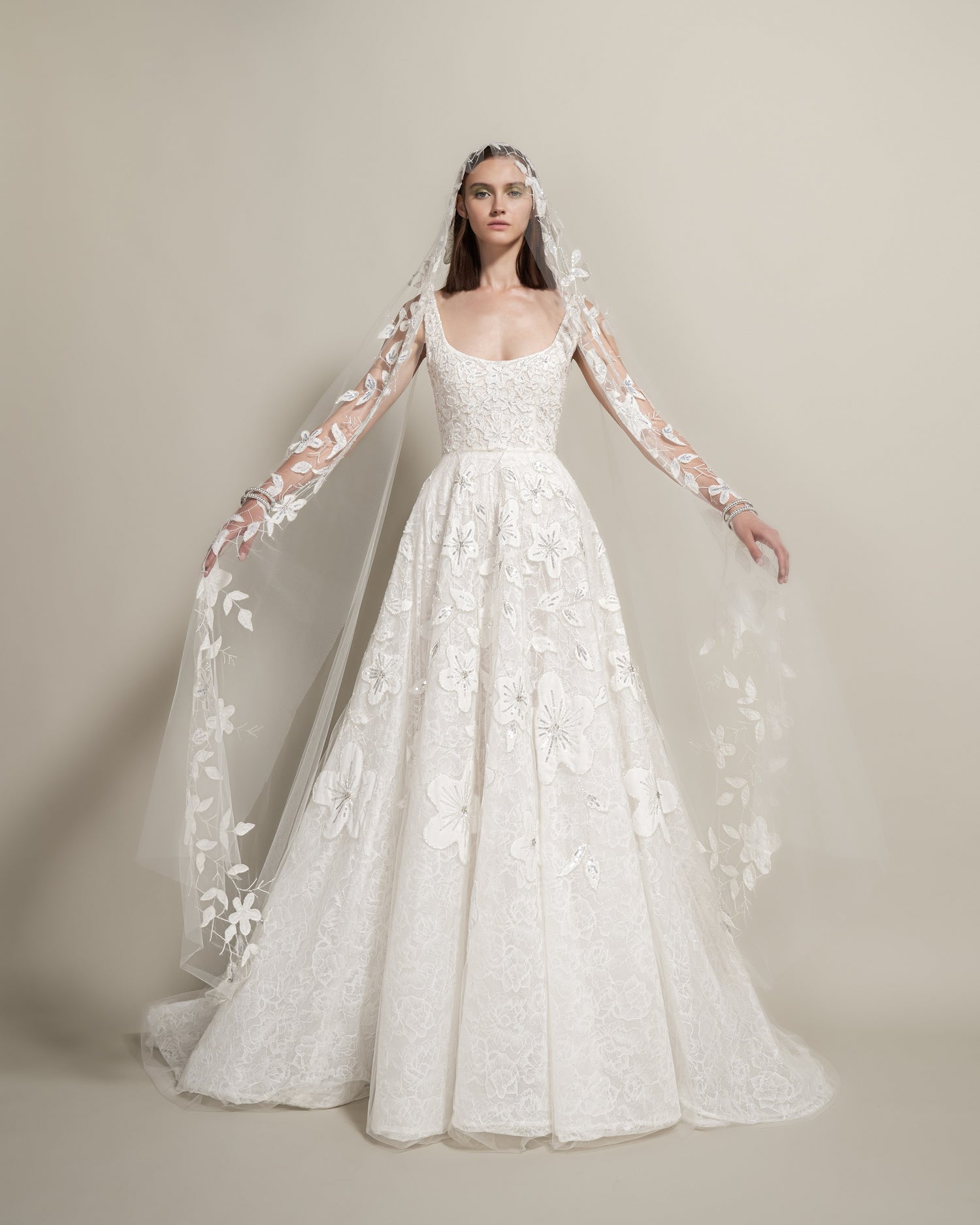 For Spring 2025, the Reem Acra bride is a vision in a blossoming garden. Delicate, rich embroideries, a brand signature, trail down gowns and evaporate like the fragrance of springtime flowers in bloom. Lush fabrications - crepe sable, tulle and silk organza - recall the dewy softness of rose petals at dawn. Handmade mikado flowers and crystal embellished bows, adorned on classic alencon and chantilly lace gowns. Evoke the first aroma of a fresh flower. Like a spring garden. This collection awakens the senses on every level, transporting the bride into the world of Reem Acra.