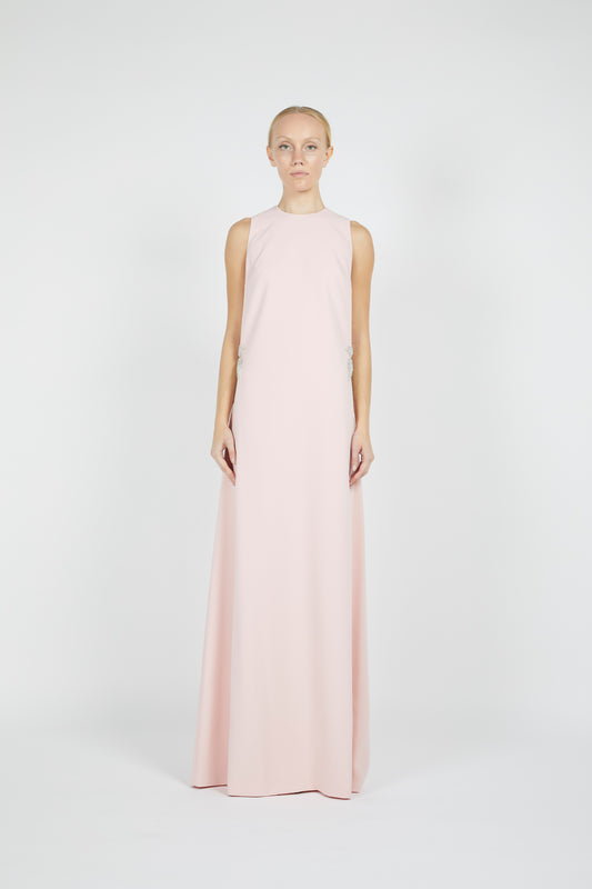 SLEEVELESS CRYSTAL AND PEARL EMBROIDERED GOWN
