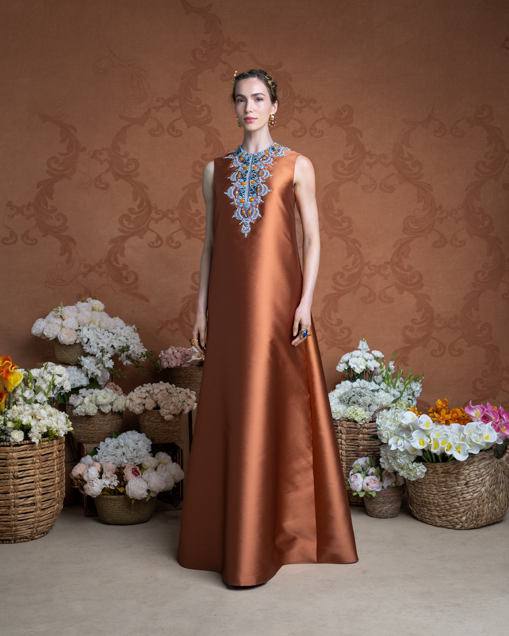 MIKADO GOWN WITH WAIST EMBROIDERY