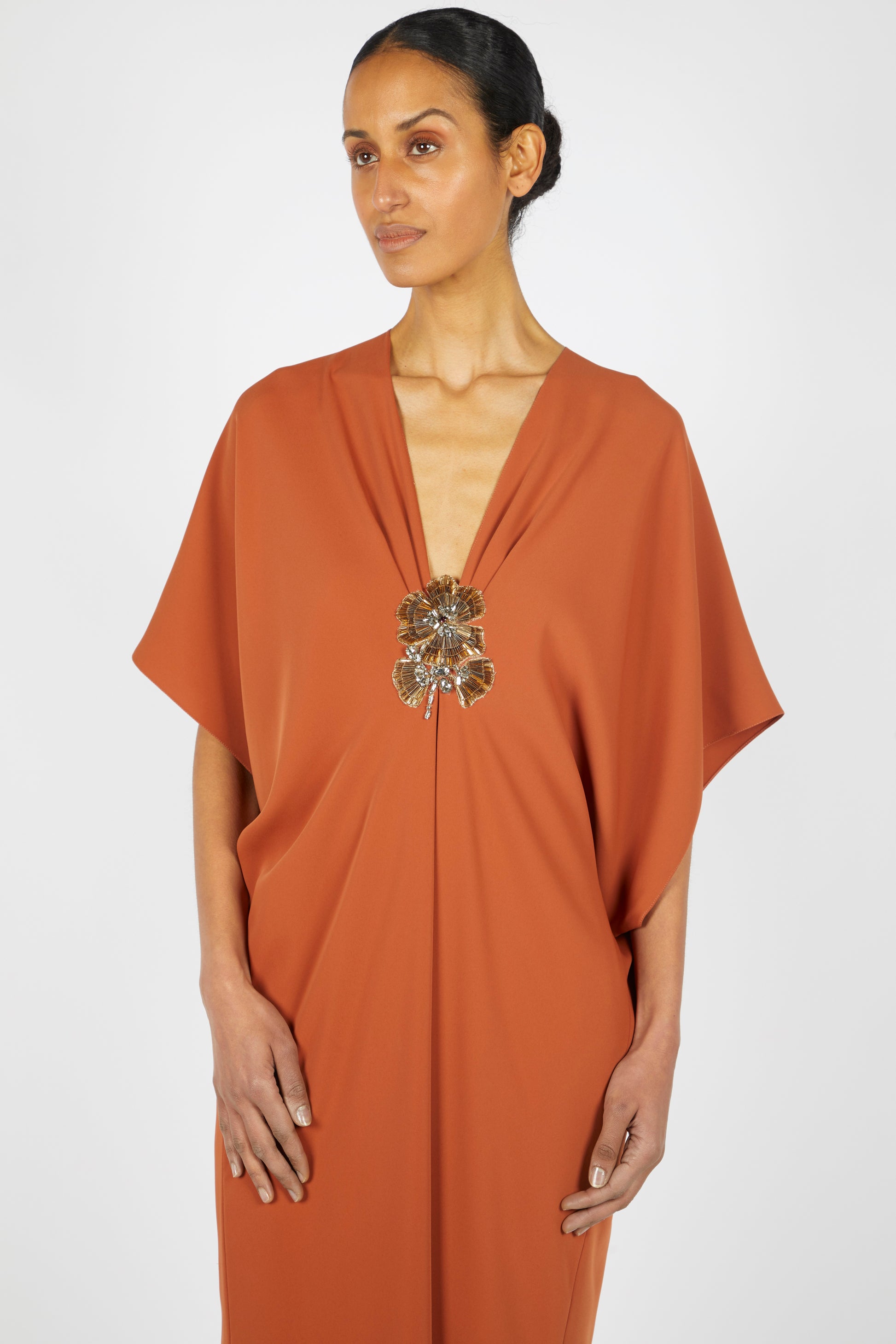 MIDI CREPE KAFTAN W/ GOLD EMBROIDERY DETAIL